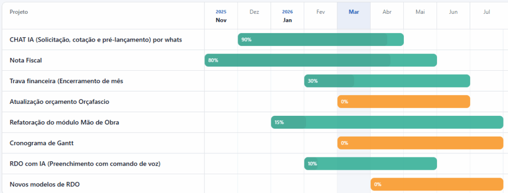 | Dashboard de Obra (Painel gerencial de obras) | Finalizado | 04/01/2024 |