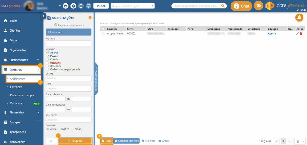 Após ter sido gerada a solicitação, o responsável poderá processar e cotar os itens solicitados, como explica este artigo aqui.