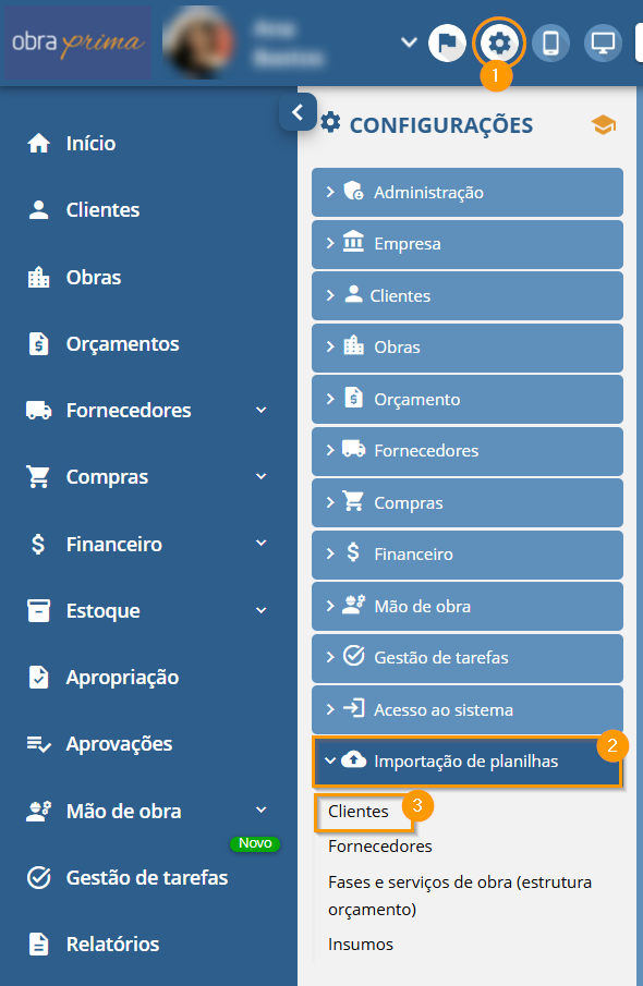 O Obra Prima possibilita a opção de importar planilhas com os dados de Clientes para o sistema, promovendo o aproveitamento da base de clientes que você já possui.