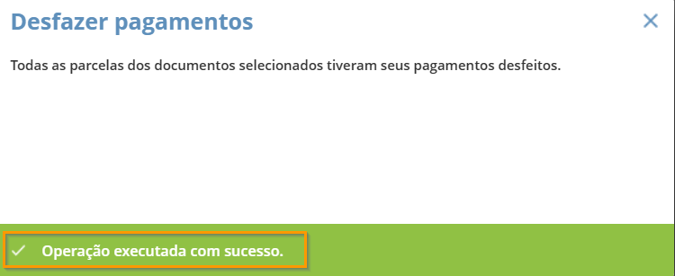 Pronto, o sistema confirmará que os pagamentos foram desfeitos!