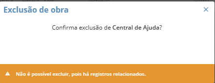 Caso o sistema retorne com essa mensagem, dê uma olhada nos fatores que podem impedir a exclusão de uma obra: