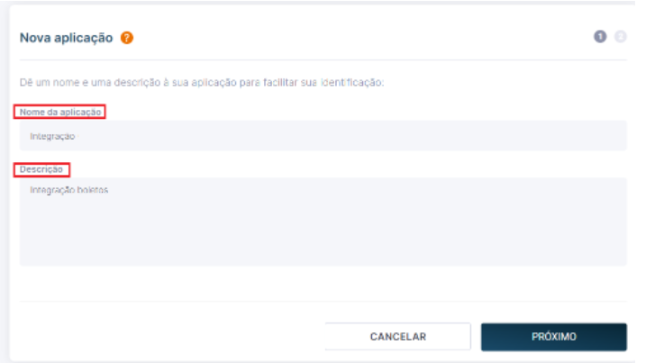 3º Passo: Após selecionar, será necessário definir um nome e descrição para sua aplicação. Importante