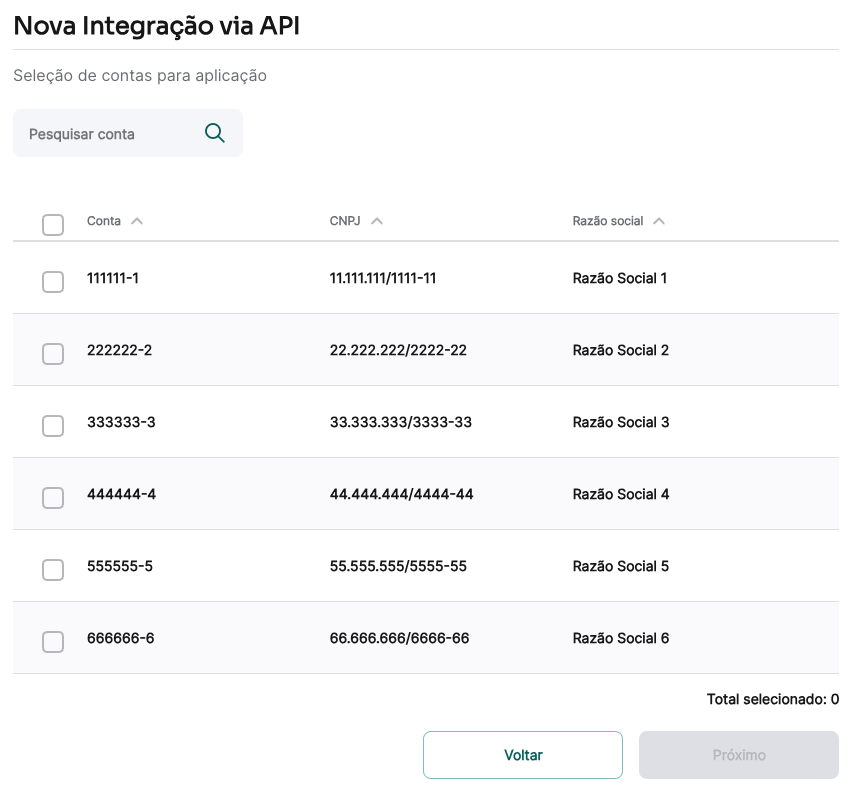 4º Passo: Após clicar em “Próximo”, selecione a conta corrente que será utilizada para a integração – beneficiária das cobranças. Caso você tenha mais de uma conta, atente-se a selecionar a que quiser receber as cobranças.