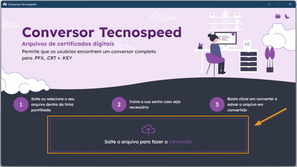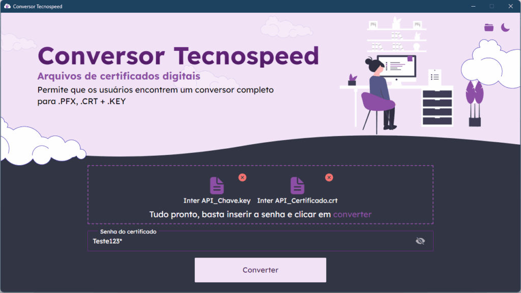 Após inserir a senha, clique em “Converter”. O sistema abrirá uma tela para você salvar o certificado, salve-o e já é possível fechar esse aplicativo.